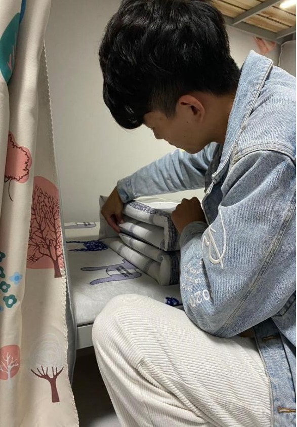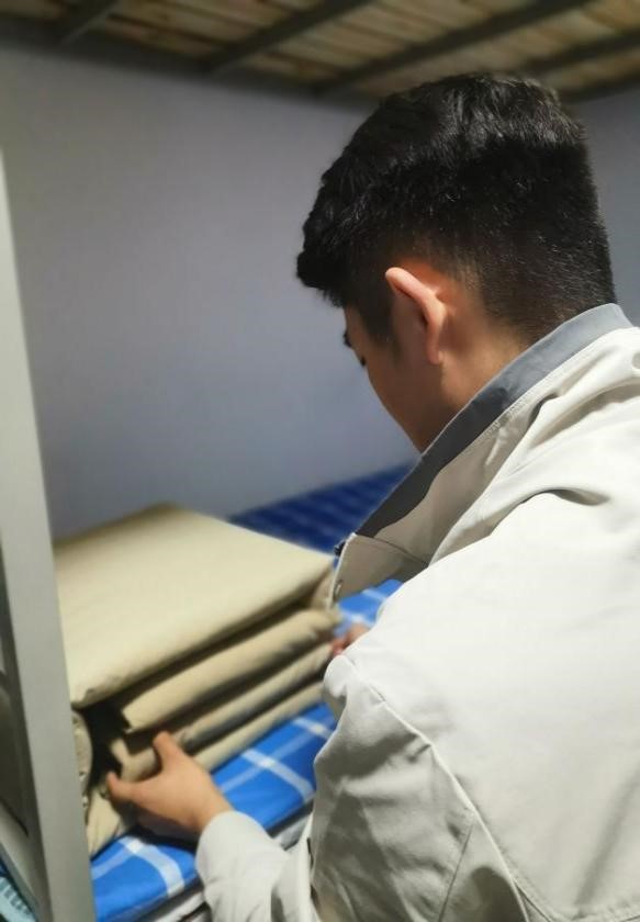 10月21日下午,32名退役老员工分别走进各寝室,为同学们展示了什么是军人内务标准。他们全程亲自示范,边操作边讲解。对折尺寸、折叠手法、掏平压实、叠出棱角……从如何将被子折成完美的“豆腐块”,到各种生活用品的摆放和收纳。大家目睹凌乱的宿舍就这样被“教官”同学妙手理新,惊讶之余内心充满钦佩。在退役老员工们的耐心指导下,大家积极配合,宿舍变得干净整齐,井然有序。大家还一起学习了环境卫生、宿舍保洁的标准,寝室内务整理工作取得显著效果。