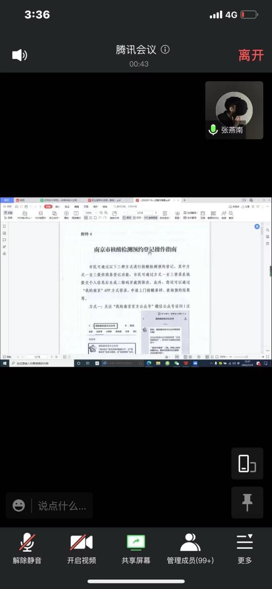 会议上辅导员老师首先向同学们介绍《南京市核酸检测预约登记操作指南》,并要求每位同学务必完成预约填写。熟悉掌握三种线上预约登记方式。