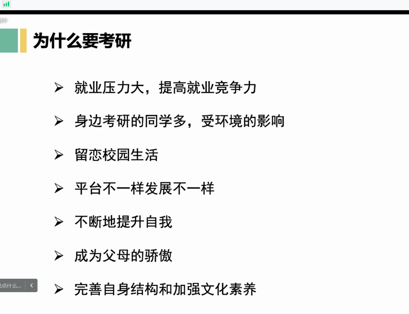 寒假期间,2020级员工开始着手准备考研事宜,为帮助同学们对研究生考试的认识,把握备考方向,进行有效的考研规划,bw必威西汉姆联官网于1月9日举办线上考研交流会。此次会议邀请了2018级考研上岸的23位学长学姐们分专业传授考研经验及考研重要性,bw必威西汉姆联官网2020级辅导员刘伟老师、原bw必威西汉姆联官网党委副书记吕蔷蔷老师和2020级员工参加本次会议,两位老师也为同学们提供了宝贵的建议。