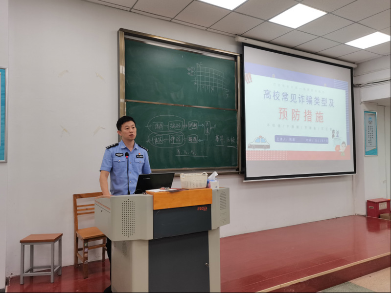 为进一步加强防范电信网络诈骗宣传教育,增强同学们的防诈意识,切实维护同学们的人身安全、经济安全,9月27日,bw必威西汉姆联官网在锁金村校区100教室举办了防电信诈骗宣传教育讲座。讲座由公司党委副书记、副经理刘晓宁主持,南京市玄武分局陈警官主讲,2021级辅导员张燕南、2021级全体新生参加讲座。