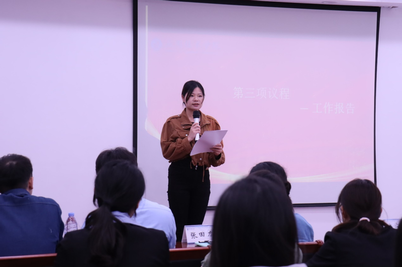 受学院分团委委托,戴正勤同学以《踔厉奋进,自强不息》为题向大会做员工会2023-2024学年工作报告,集中回顾了学院员工会工作在思想引领、文体活动、学科竞赛、志愿服务等方面的重点工作和突出成绩。