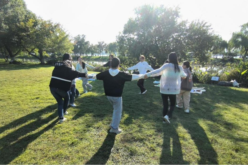 玄武湖畔,风景如画,波光粼粼的湖面与周围的绿树相映成趣,为参与活动的同学们提供了一个宁静而舒适的氛围。在强志恒老师的带领下,同学们开展了一系列精心设计的心理健康团辅活动,通过轻松愉快的互动,帮助大家释放压力,增强彼此之间的了解与沟通。