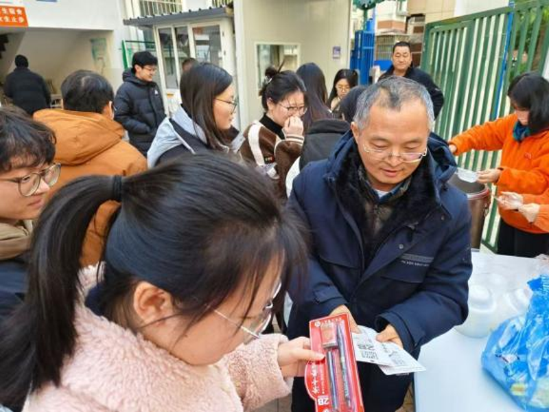 活动现场,王俊经理亲自为考研同学们发放了考研文具,同时叮嘱着大家注意近期身体,放平考试心态,沉着地应对本次考试。在轻松温暖的现场氛围中,同学们脸上纷纷洋溢着幸福的笑容。