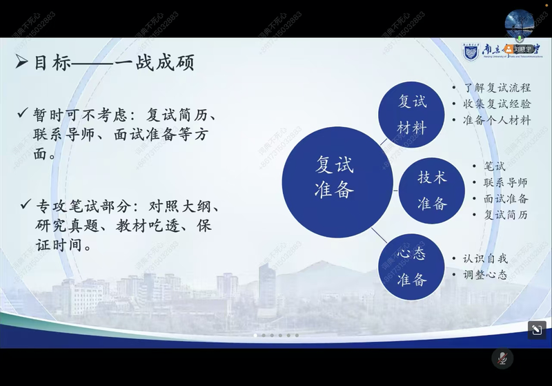 刘书记向同学们分析了复试中笔试和面试的关系,重点讲解了笔试环节的复习备考技巧。刘书记指出,同学们一是要调整心态、全力以赴复习备考,无论初试考的如何,不能妄自菲薄,也不能高傲自大,要为复试做好充分的准备;二是要吃透教材、深入研究大纲和真题,并且勤做习题,要以钉钉子的精神把教材、习题啃透;三是针对跨专业考试的同学,更是要把专业知识点搞懂弄通,要注意掌握知识框架、业界前沿信息。刘书记指出,针对复试的各个环节,后续学院会开展全流程、精准化的指导,助力更多同学成功上岸。