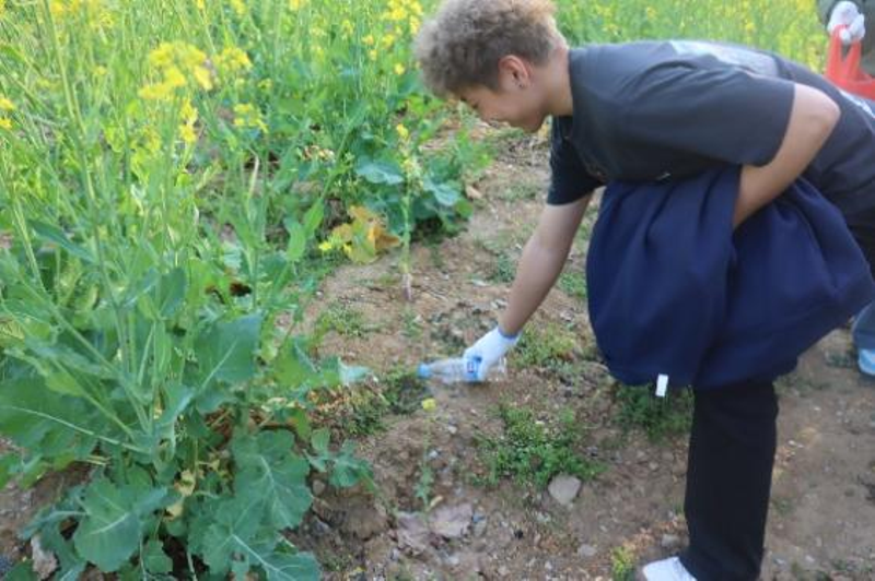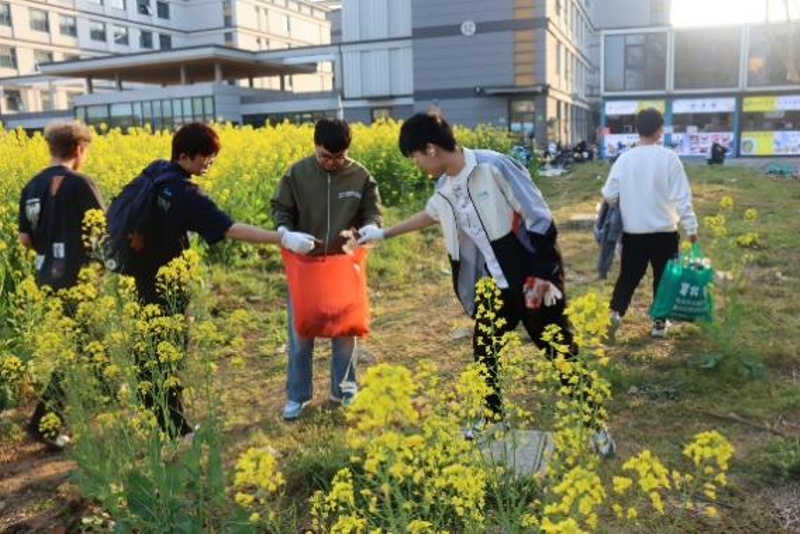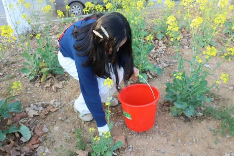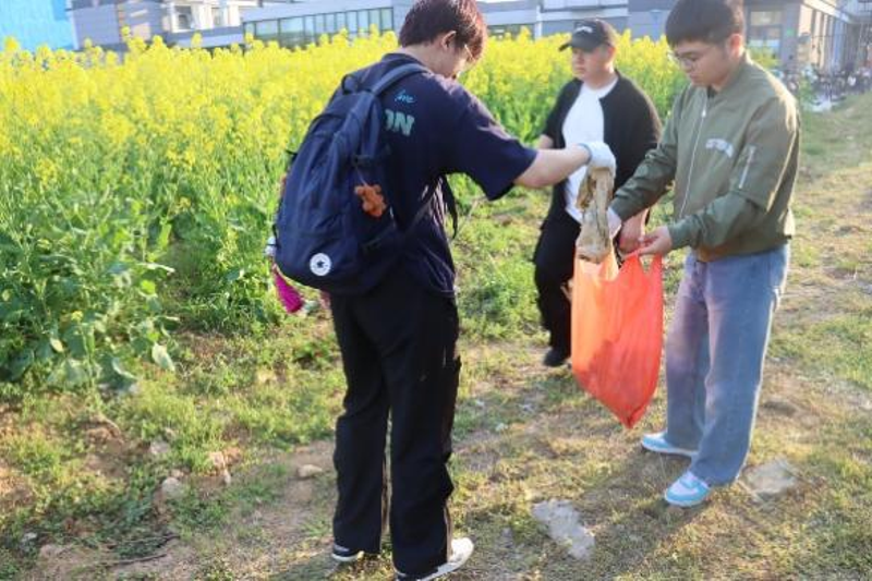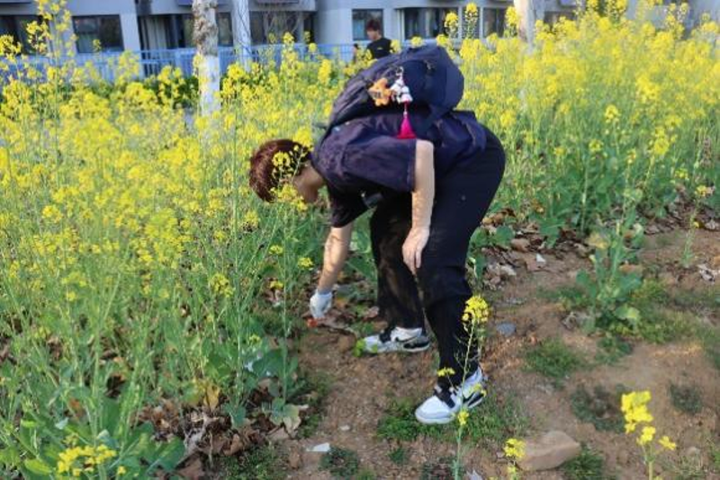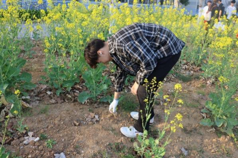 活动现场,同学们热情高涨,积极投身于劳动实践。他们穿梭在金黄的油菜花田间,仔细地捡拾着散落的垃圾,用双手清理着杂物,为这片美丽的花海守护着干净与整洁。虽然劳动有些辛苦,但大家脸上洋溢着满足的笑容,因为他们深知,正是自己的努力让这片美景更加动人。