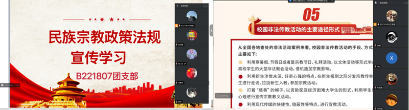 前期,学院各个团支部已经通过线上线下组织学习了关于民族宗教工作的相关政策法规;会上,同学们围绕学习内容畅谈心得体会,通过交流讨论,对民族宗教政策法规的核心要义和重要内涵有了更为深刻的理解和把握。