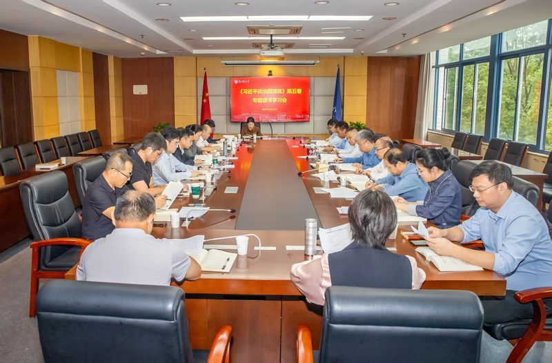 会上聚焦《习近平谈治国理政》第五卷,深刻学习以习近平同志为核心的党中央统筹国内国际两个大局,全面推动建设社会主义现代化国家的生动实践。校领导郭宇锋、蒋国平、王友国、周和林、肖甫、刘青山、谢平、周亮以及相关部门负责同志领学。