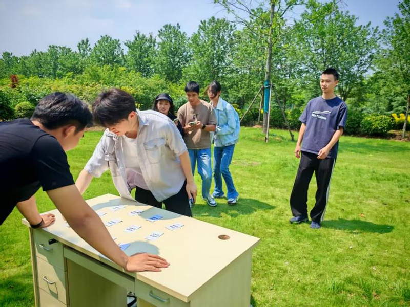 “翻扑克牌”活动则考验着团队的策略规划与协作能力。各小组需按顺序翻开扑克牌,成员们积极讨论、分工明确,在不断尝试中摸索最佳方法,深刻体会到团队合作中统筹规划与相互配合的力量。
