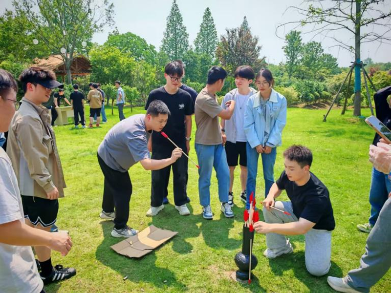 “投壶”游戏充满趣味与挑战。成员们手持箭矢,专注瞄准壶口投掷。每一次成功投中,都伴随着欢呼与掌声,不仅释放了压力,更让大家明白专注与耐心在面对困难时的关键作用。