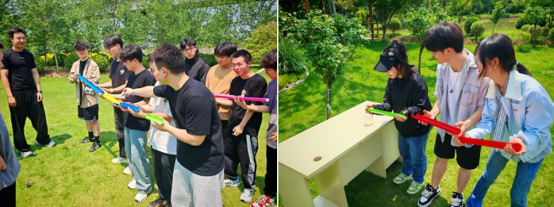 “传递小球”环节,成员们在相互接力的情况下让小球传递。大家齐心协力,不断调整策略,小球顺利传递的同时,团队的默契也在悄然提升。