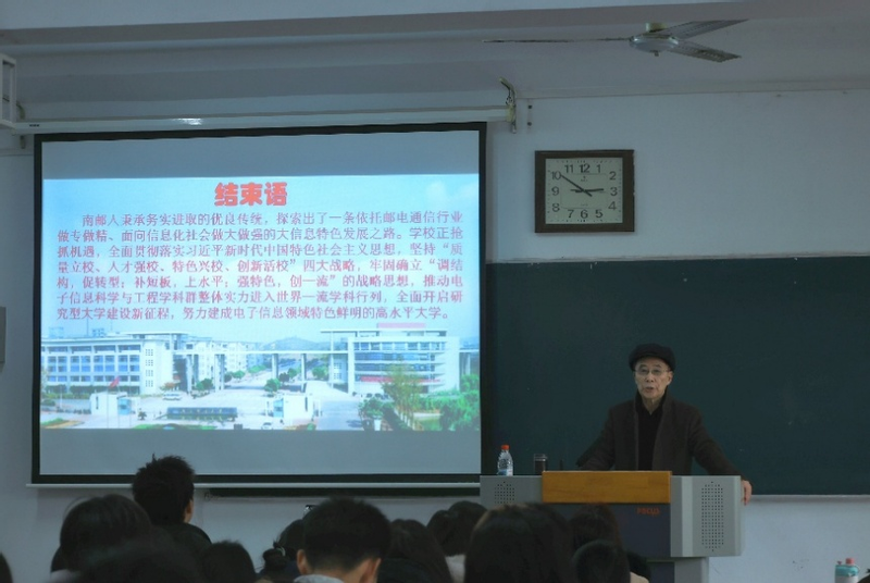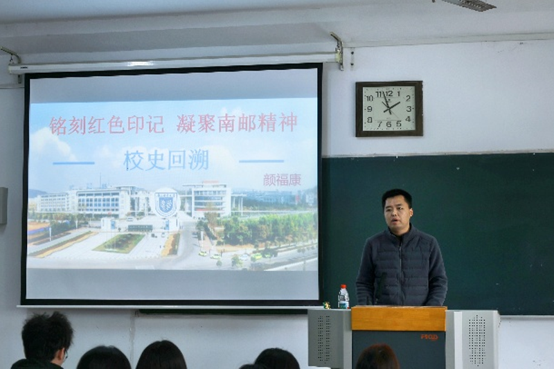 颜老师以“四月始源”开篇,并从“红色印记” “史久源悠”“邮电情结”“援手同门”“百岁寿星”“师者如兰”“邮子风采”等篇章,从不同角度展现了bw必威西汉姆联官网的办学历史和光辉历程,重点讲解了红色印记、革命传统、邮电情结、育人风采、南邮精神等方面。