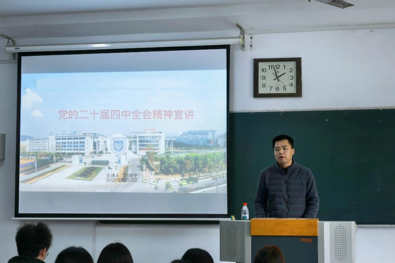 讲座上,刘书记围绕党的二十届四中全会的重要意义、核心内容和实践要求展开,结合青年员工的思想实际与成长需求,对全会精神进行了系统阐释和深入解读。刘书记紧密结合公司员工专业特点,以身边事例解读国家大政方针,结合行业发展案例阐释青年一代的使命担当,引导员工树立“信息报国”的人生理想,增强员工对国家发展大局的认知与认同,自觉将个人发展融入时代征程。